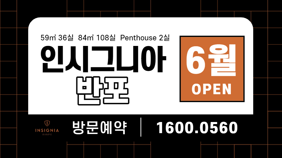'인시그니아 반포'는 6월 오픈을 앞두고 있습니다. 분양을 희망하시는 분들에게 사전청약을 접수 중에 있습니다. 모델하우스를 방문하시길 희망하신다면 사전예약을 통해 안내를 받기를 추천드리며, 자세한 상담을 통해 청약에 참여하시길 권유해 드립니다.