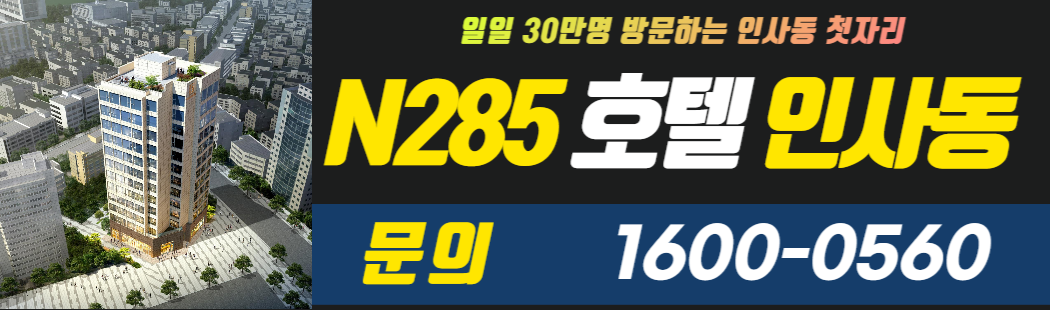 일일 30만명 관광객들이 몰려드는 인사동 문화거리 진입로에 위치하고 있는 N285 호텔 인사동은 지하철 1·3·5호선 환승역인 종로3가역과 종각역·안국역까지 도보권으로 누리는 트리플 역세권 자리, 경복궁·창덕궁·창경궁·운현궁·종묘·동대문을 비롯한 북촌한옥마을·인사동문화거리·명동·익선동한옥거리와 최근에 개발한 청와대까지 다양한 볼거리·즐길거리·먹거리가 있는 관광의 중심지 등을 편리하게 이용가능합니다.