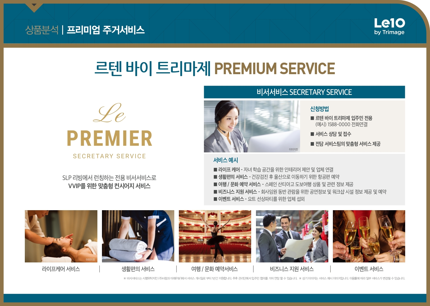 모든 시설과 서비스는 입주민 전용 애플리케이션을 통해 예약/신청/결제/이용을 할 수 있도록 ONE STOP 제공해 드릴 예정입니다. 이외에도 입주자가 원할 시에는 입주자 전용 맞춤형 서비스까지 제공할 예정으로 진정한 프리미엄 컨시어지 서비스를 누릴 수 있는 환경을 가져다줍니다.